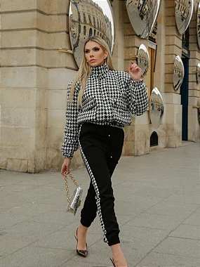 Calça estilo Jogger com faixa lateral em Pied de Poule.