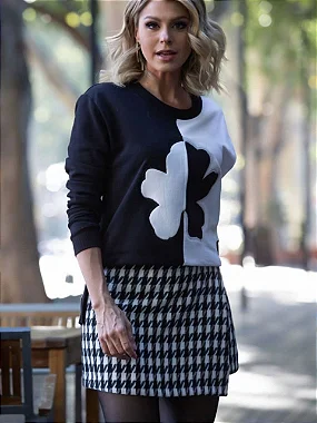 Estampa em tweed preto e branco.